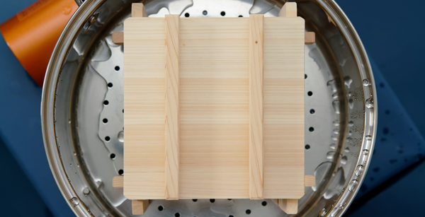 蒸し器に③を入れ、ヒノキの香りがごはんにでてくるよう4~5分蒸す。