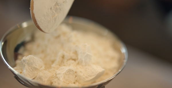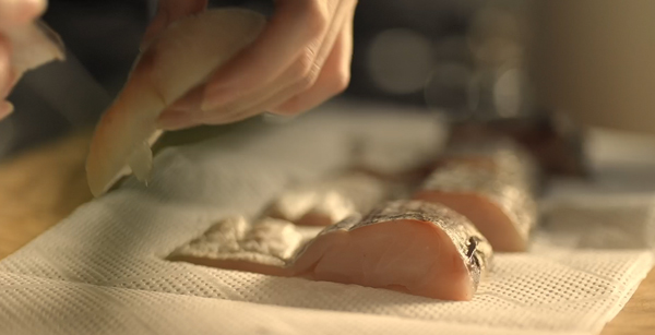 魚の切り身に小麦粉をまぶし、余分な粉を振り落とす。