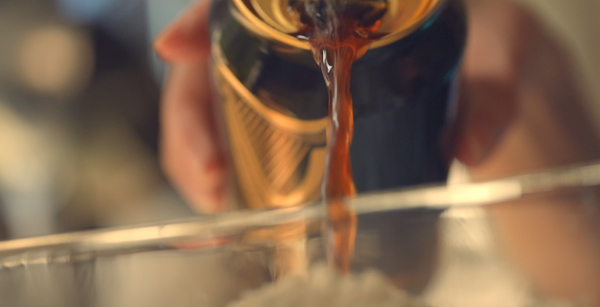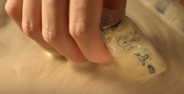 小麦粉に黒ビールと炭酸水を加え、なめらかな生地になるまで混ぜる。