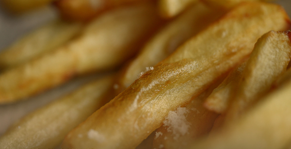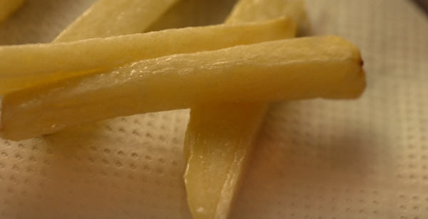 火が通ったら取り出し、油を切り、塩をふる。塩をふる。