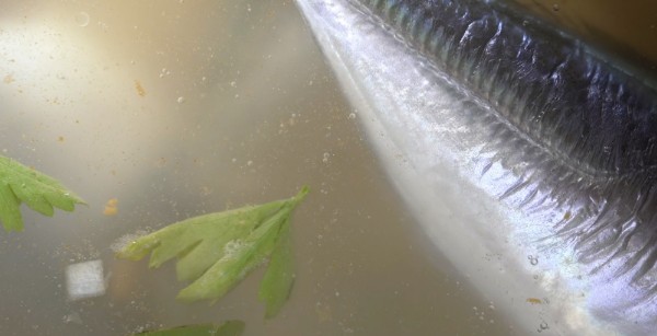 魚、水、お好みでじゃがいも、パセリなどを②に入れ、中火で沸騰させ、アクを取り除き、弱火て30 分ほど煮る。塩で味を調える。